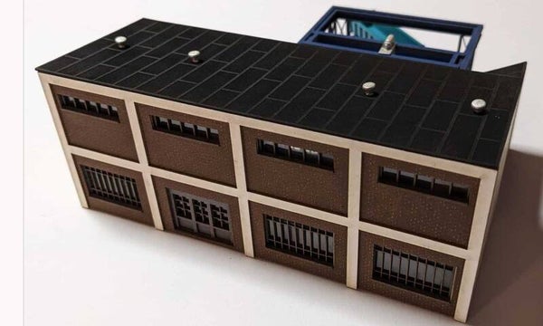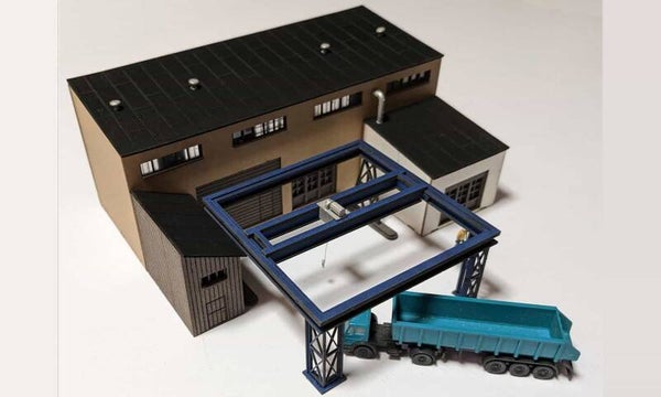 Mit Kran und Anbaugebäuden, sowie 3D Druckteile (Krankatze, Schornsteine, Rohrüberlauf) als Zubehör.