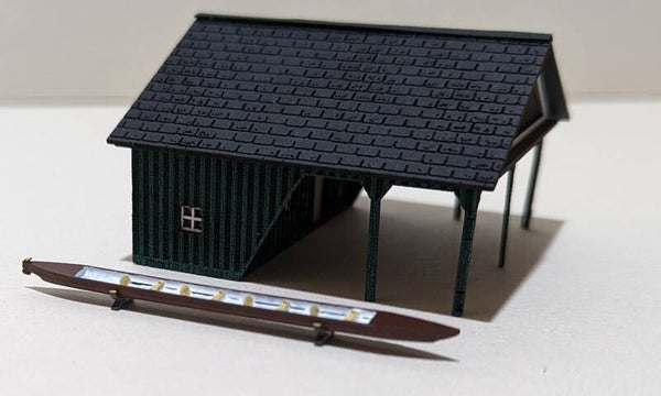 Kleines Bootshaus als Lasercut Bausatz mit Zubehör (3D Druckteile) für Spur N 1:160.