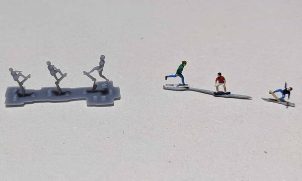 Skateboard Fahrer in 3 Varianten für Spur N 1:160, 3D Druck.