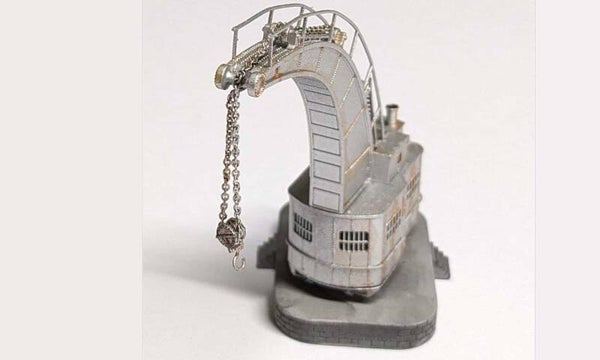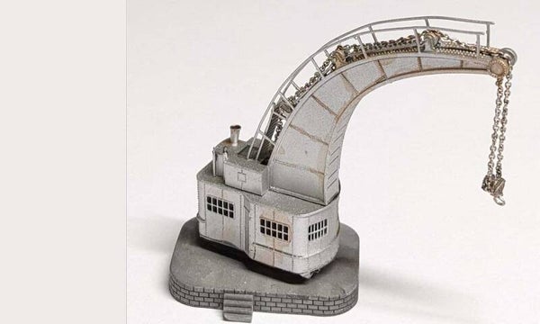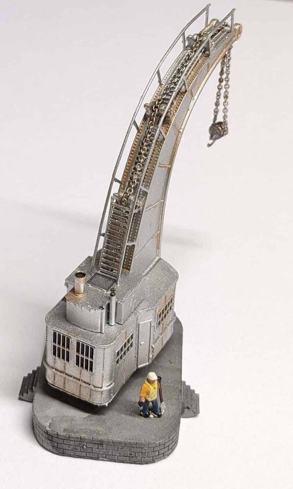 Dieser Bausatz eines Dampfkran / Hafenkran für Spur N 1:160 ist sehr detailliert gestaltet und wird mit Podest geliefert.
