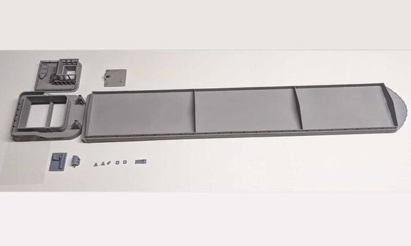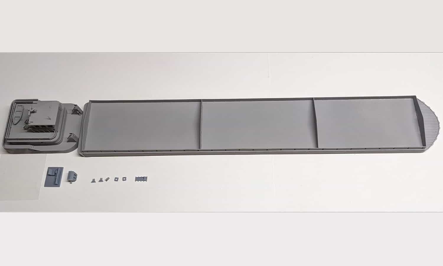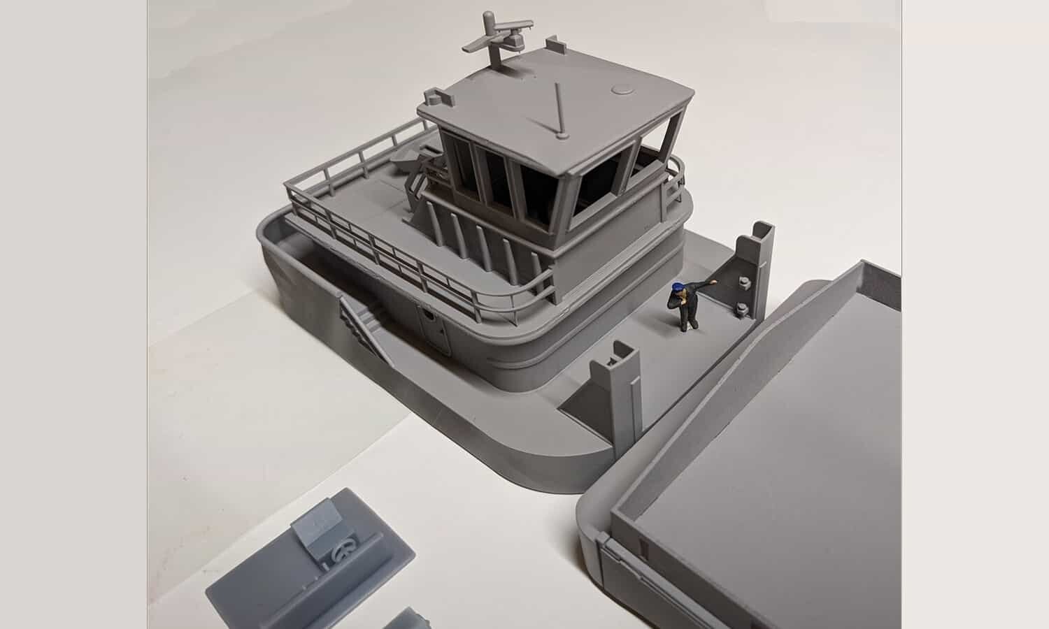 Das Schubschiff, Zubehörteile und Anbauteile vom Leichter sind im 3D Druckverfahren hergestellt.