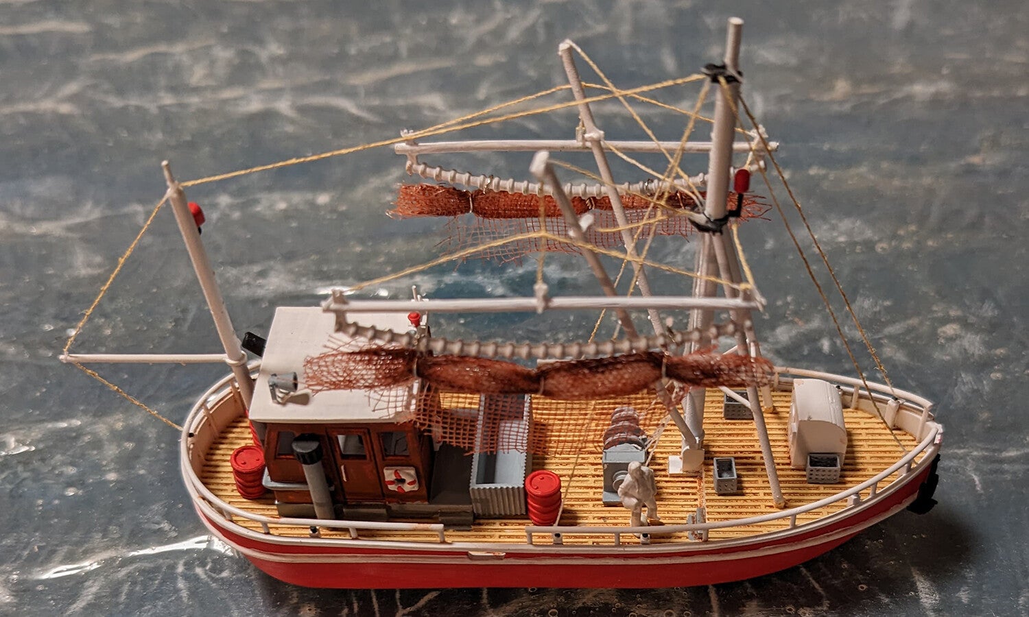 3D Druckmodell Bausatz Krabbenkutter mit Zubehör für Spur H0 1:87.