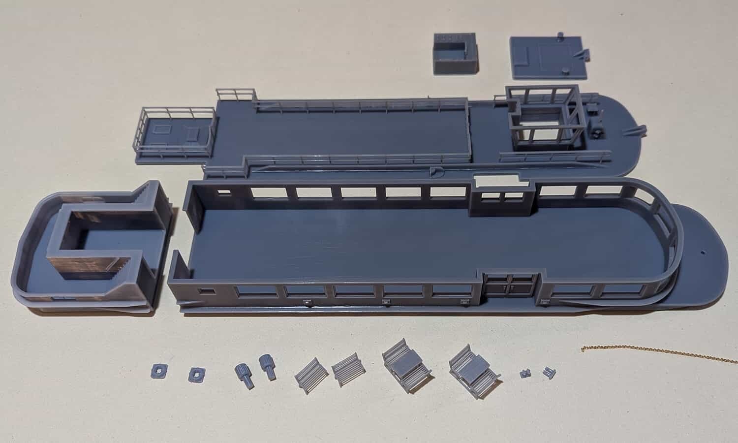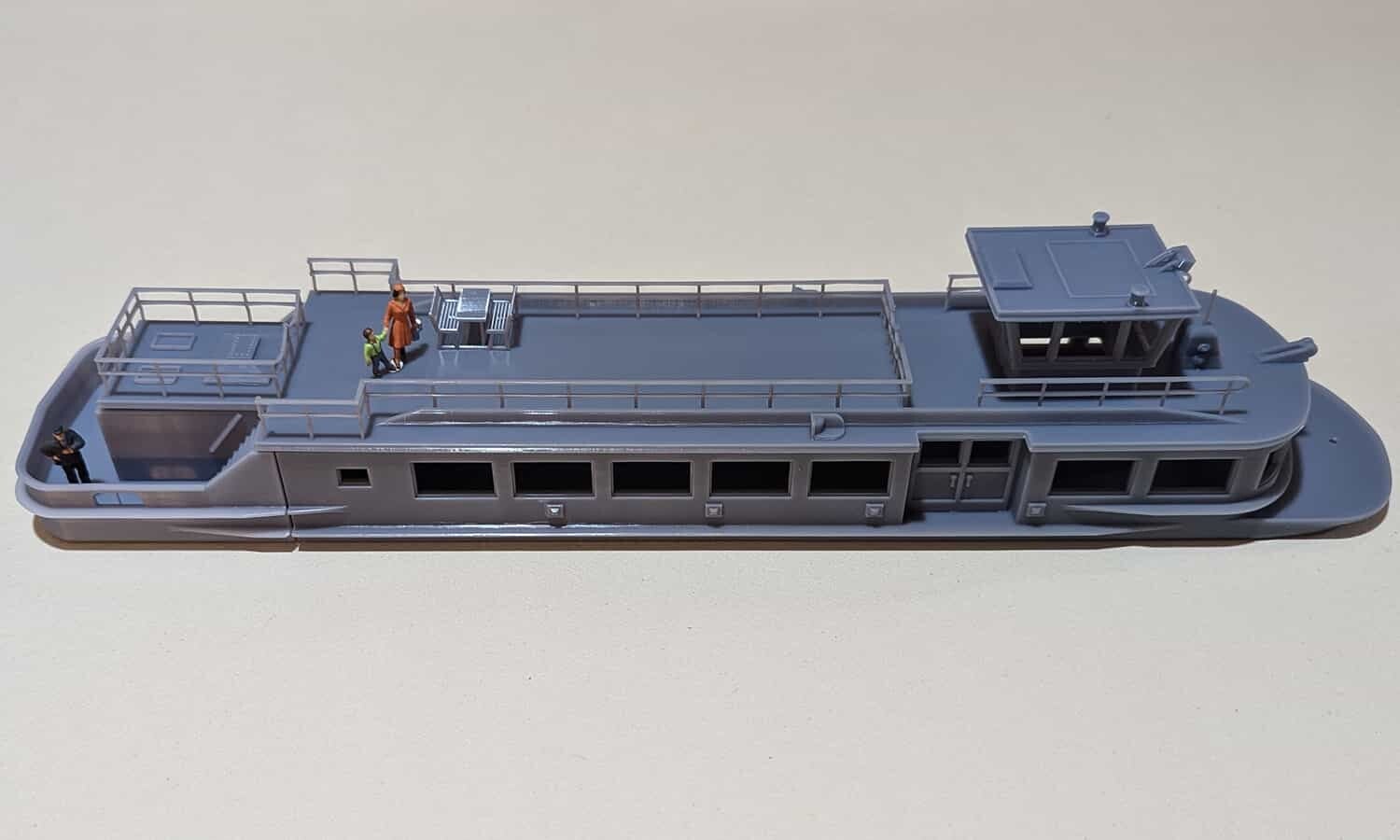 Fahrgastschiff mit Zubehör für Spur H0 1:87 als 3D Druck Bausatz.