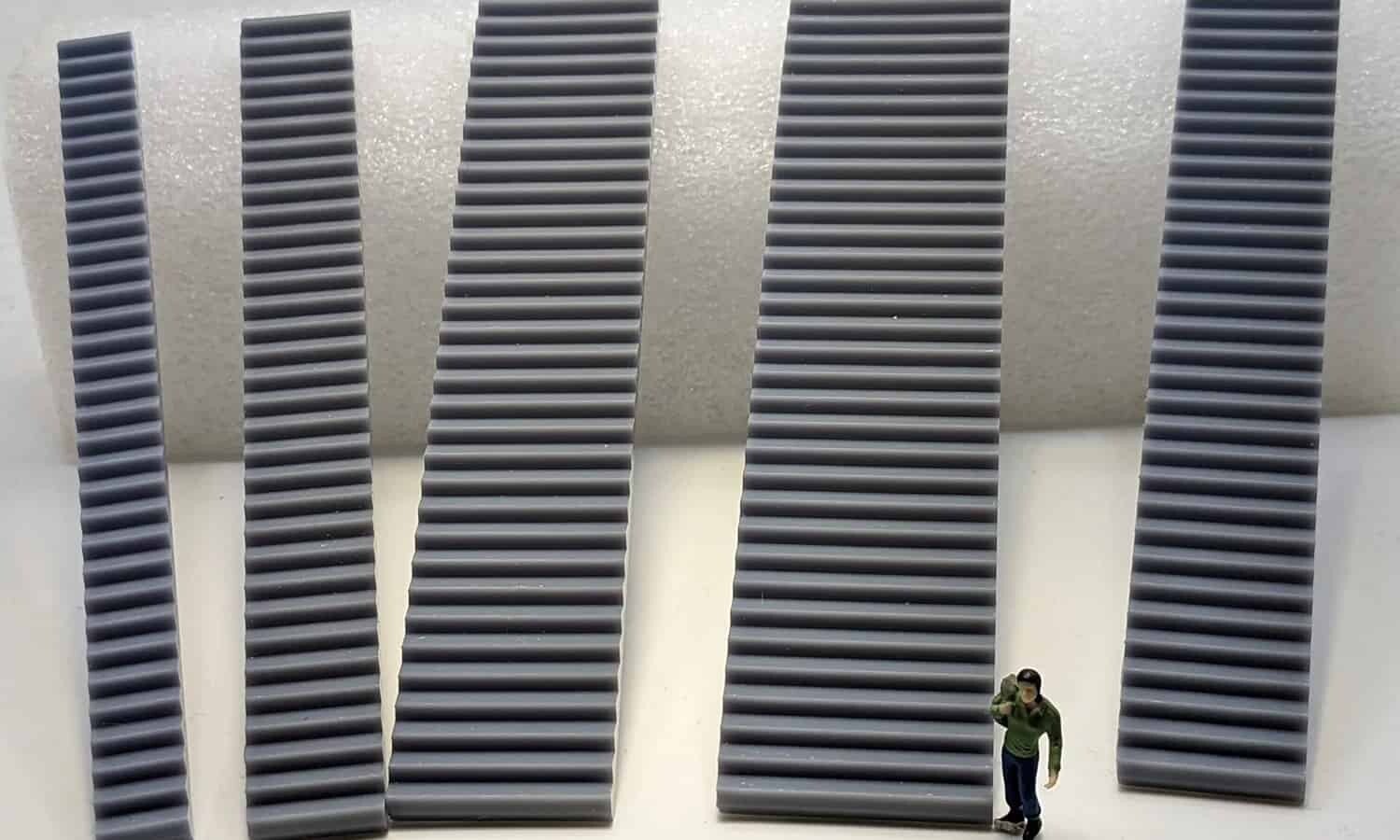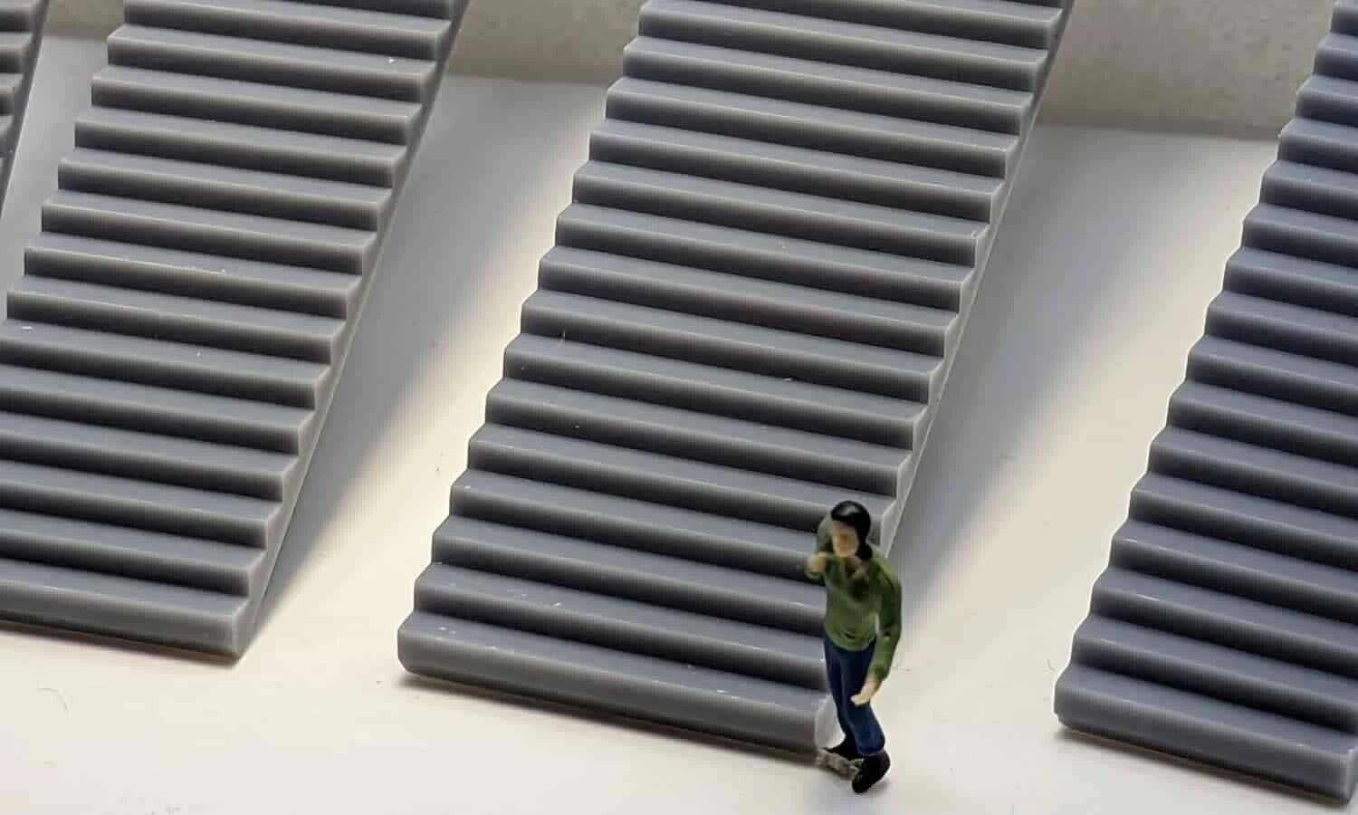 Dieses Treppen-Set für H0 1:87 besteht aus 5 verschiedenen Treppenbreiten mit einer Länge von je ca. 122 mm. Die Treppen lassen sich für den gewünschten Einsatz beliebig kürzen.