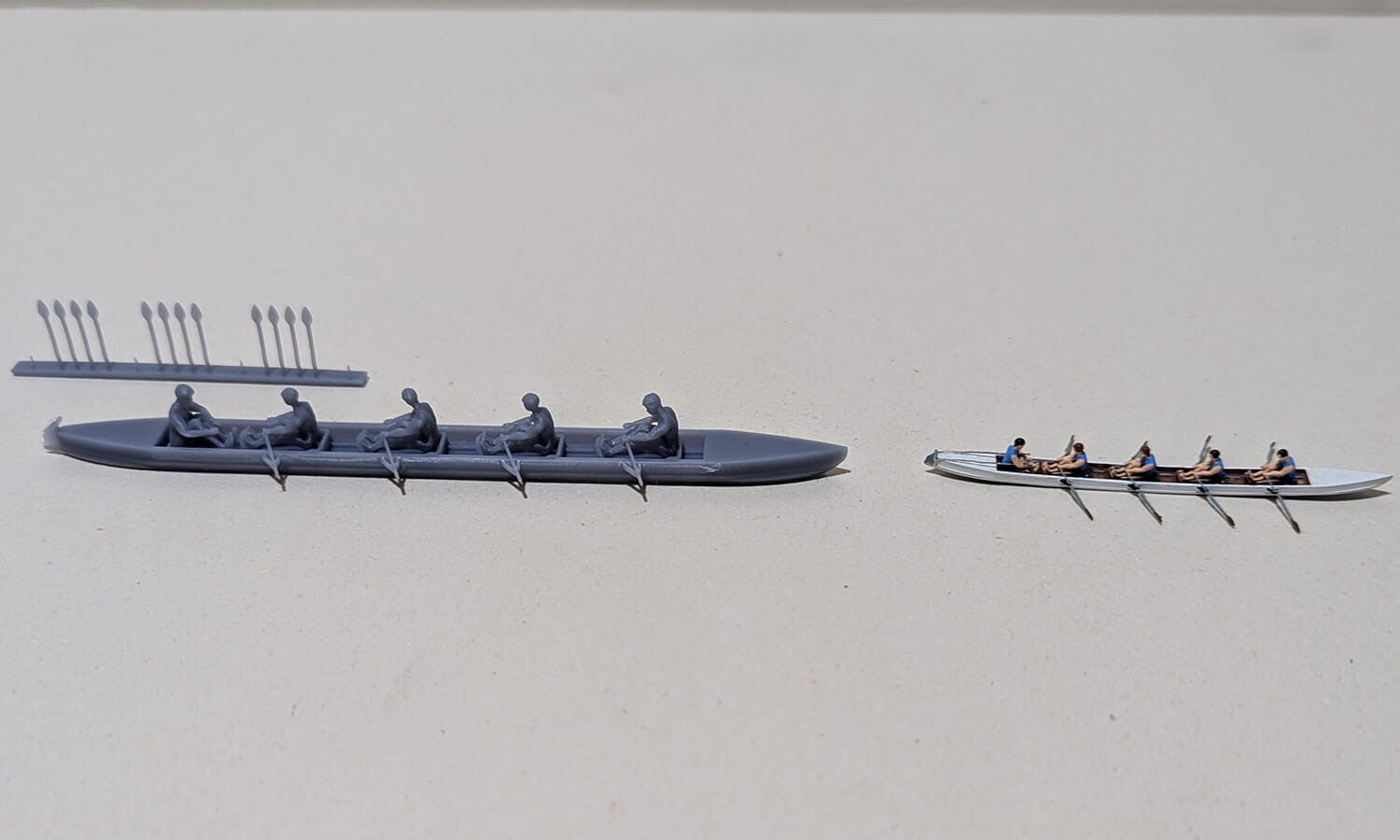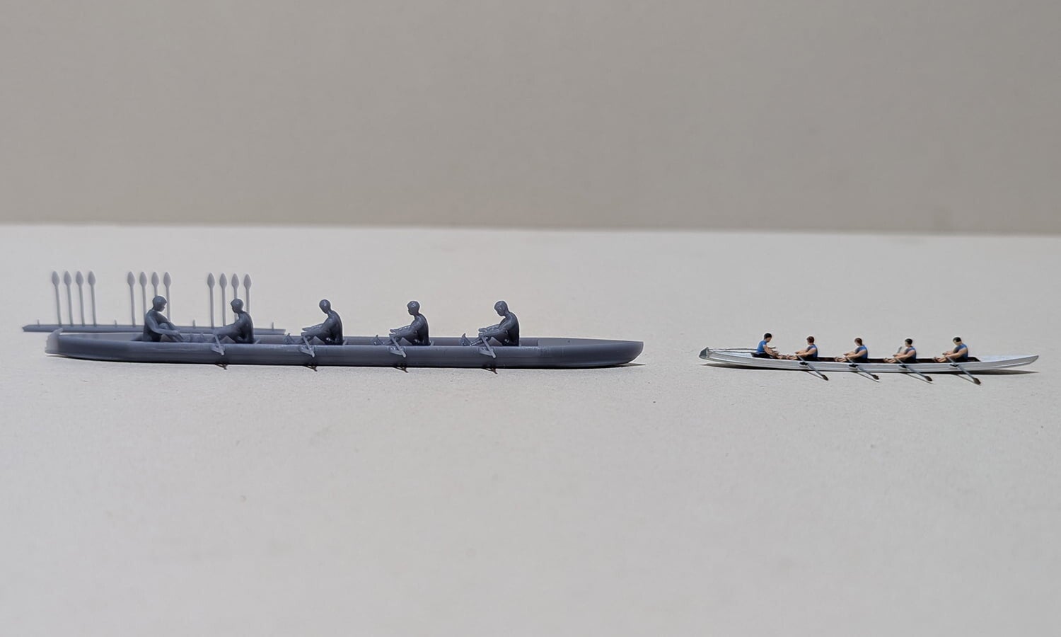 3D Druckmodell eines Ruder Vierer mit Steuermann in Spur H0 1:87.