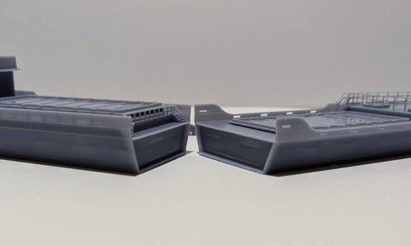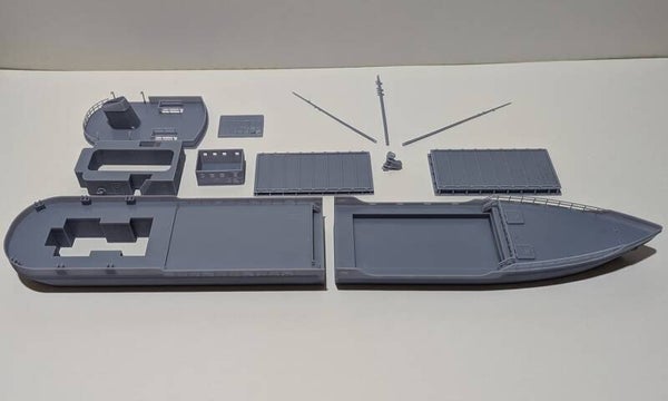 Viele der Aufbauten sind vom Rumpf getrennt, was eine saubere und präzise Farbgebung ermöglicht.