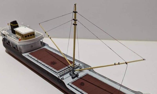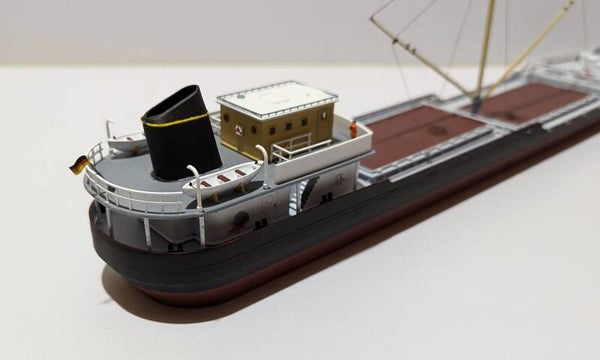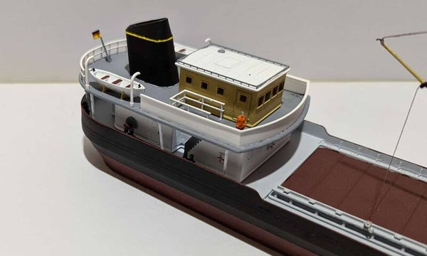 Auf den Ladeplattformen kann noch zusätzlich Ladung (z.B. Rohre usw.) platziert werden. Das Modell überzeugt durch eine detaillierte Gestaltung mit viel Zubehör wie Niedergang, Winde, Rettungsboote usw..