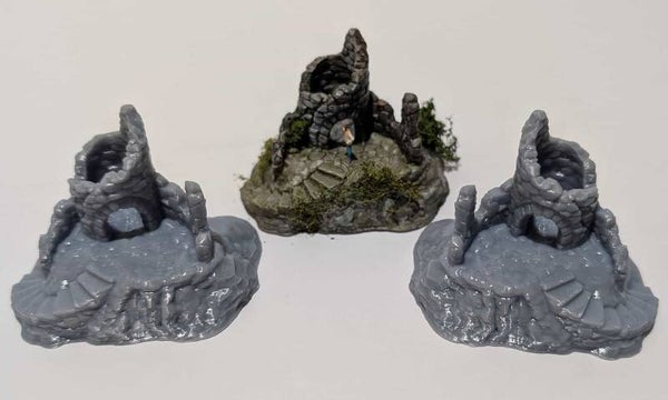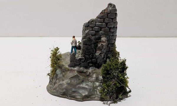 Kleine Burgruine auf Felsen mit Treppenaufgang für Spur N 1:160.
