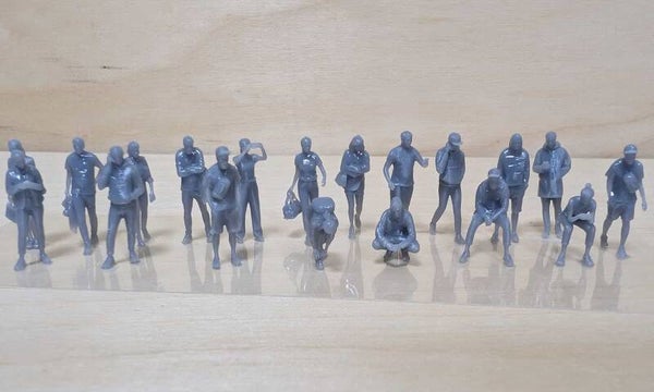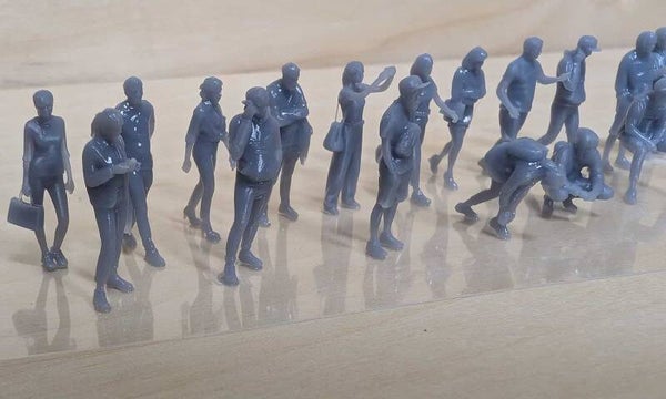 Das Bild zeigt Figuren mit Beispielbemalung in Spur N, die Lieferung erfolgt OHNE Bemalung.