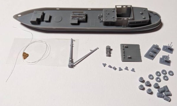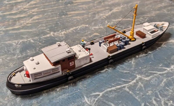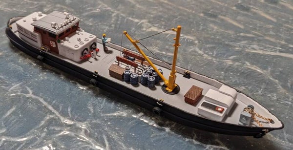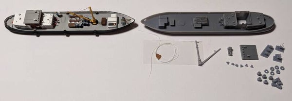 3D Druck Bausatz Bunkerboot mit Kran für Spur TT 1:120.