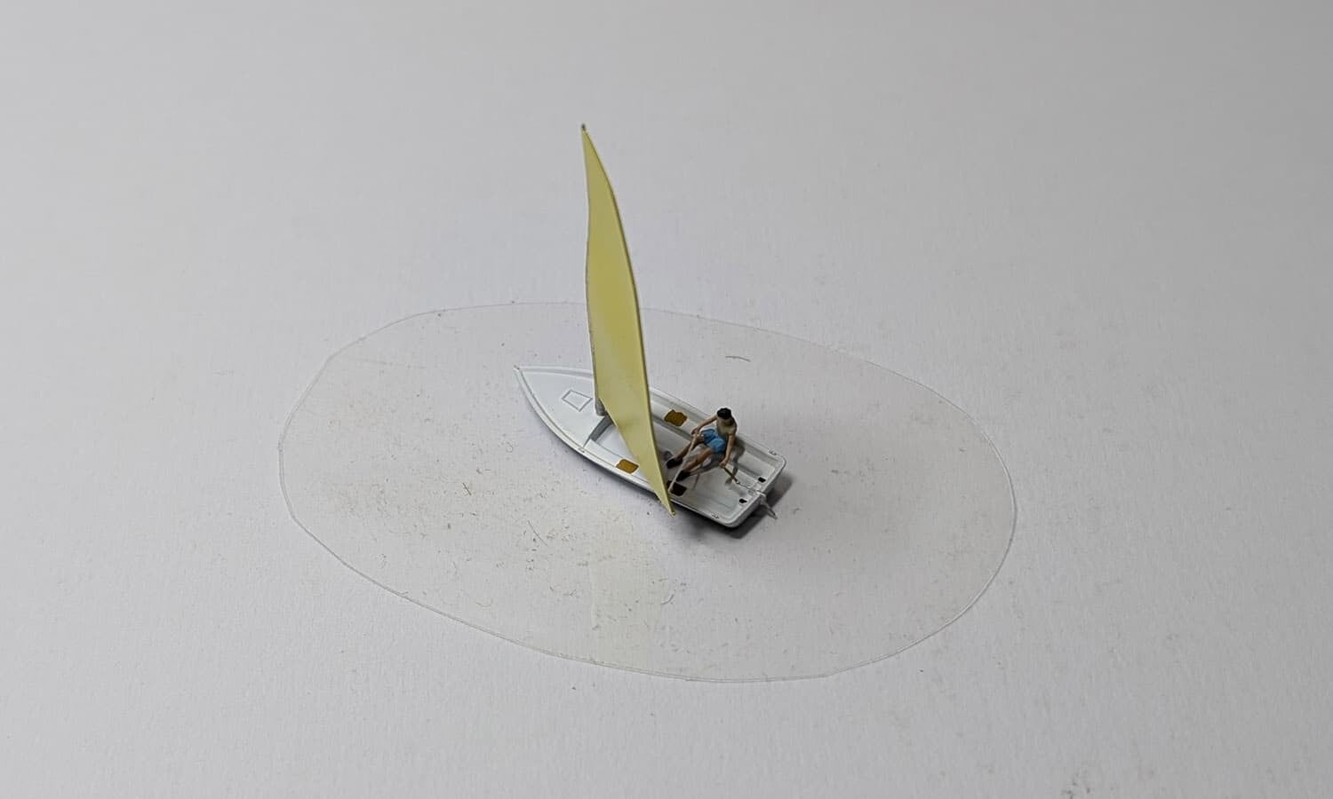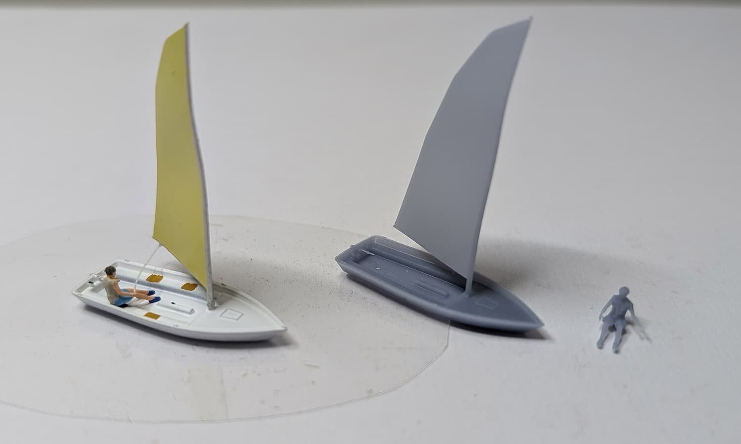 Segeljolle mit Figur für Spur N 1:160 als 3D Druck.