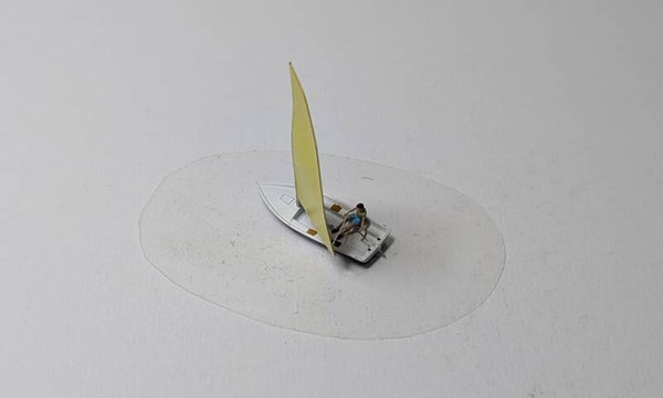 Segeljolle mit Figur für Spur TT 1:120 als 3D Druck.
